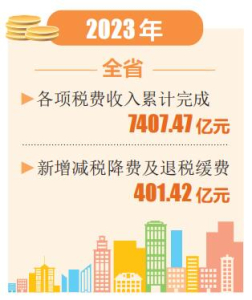 本報訊(記者任志霞)近日,記者從全省稅務工作會上獲悉,2023年全省各項稅費收入累計完成7407.47億元,全省新增減稅降費及退稅緩費401.42億元。