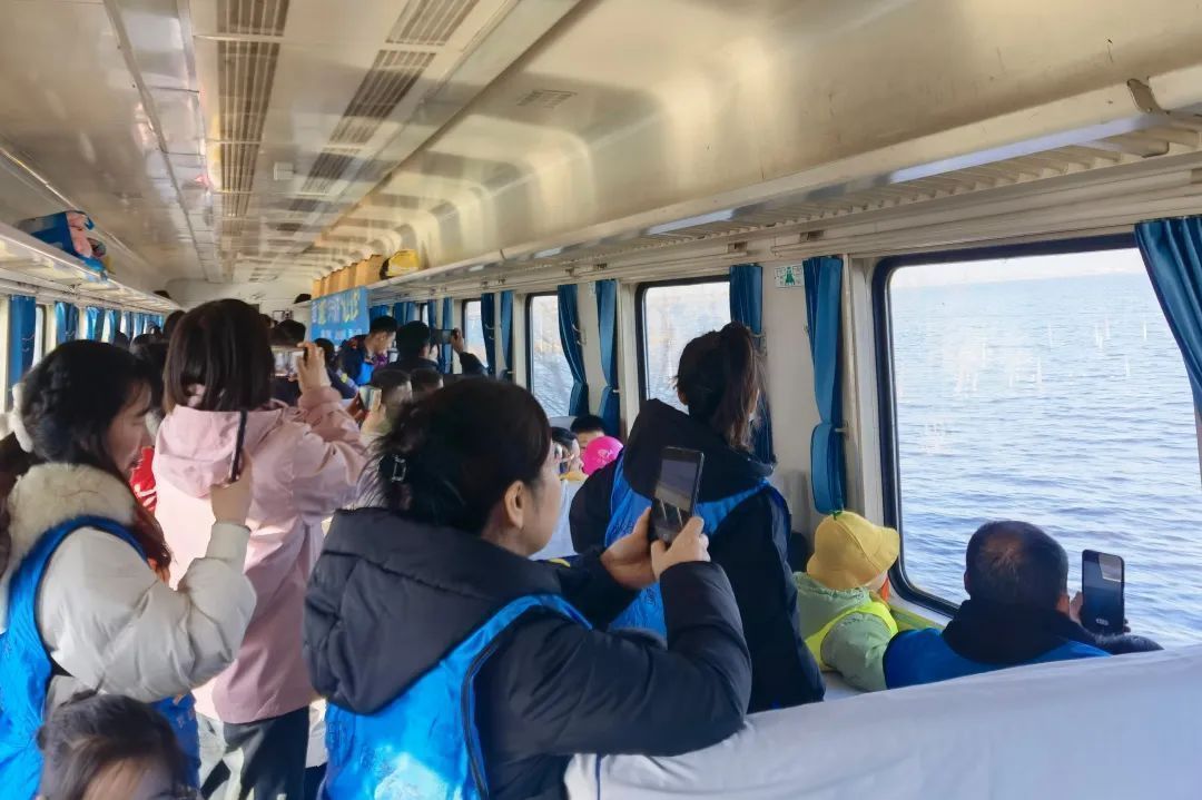 瞧,來(lái)打卡“水上列車”的旅客真不少