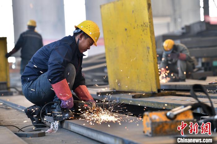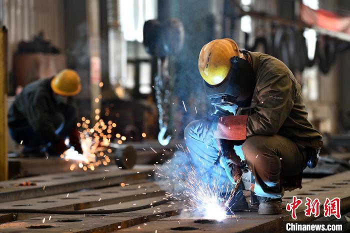 工人在車間氣保焊作業(yè)。 中新網(wǎng)記者 韋亮 攝