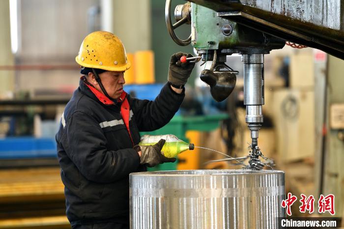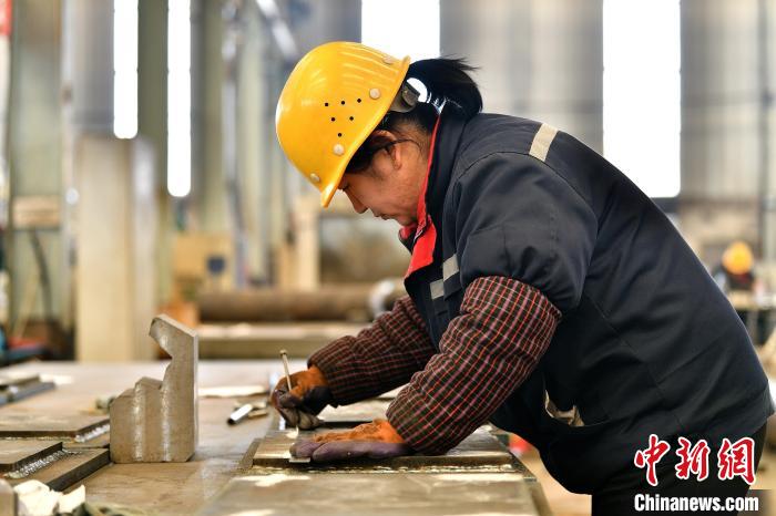 工人在車間劃線作業(yè)。 中新網(wǎng)記者 韋亮 攝