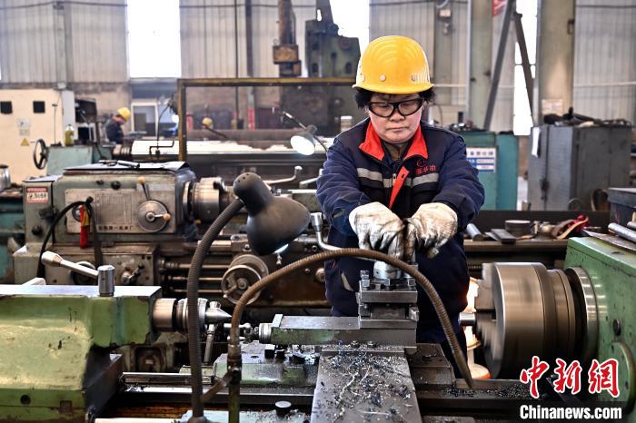 工人在車間利用車床打磨作業(yè)。 中新網(wǎng)記者 韋亮 攝