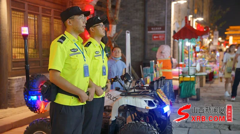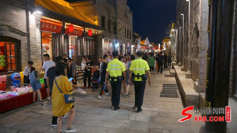 夜幕下的古城,華燈初上,忻府公安的警燈分外閃亮,巡邏民警穿梭在人群中,守護在群眾身邊,用最短時間、最快速度處理群眾緊急求助、處置各類突發(fā)警情,確保警力24小時不缺位,全力以赴守護景區(qū)和游客安全。(劉潔)