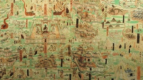 敦煌壁畫《五臺(tái)山圖》(局部)。源自網(wǎng)絡(luò)
