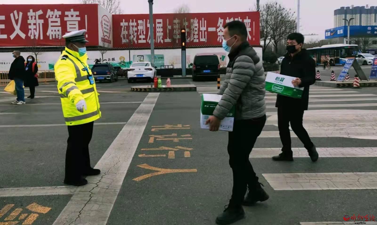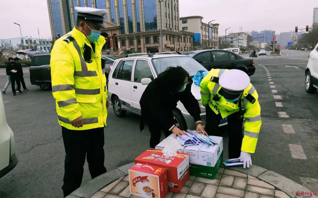 圖為向和平路高速路口抗疫一線交警人員送去防疫物資