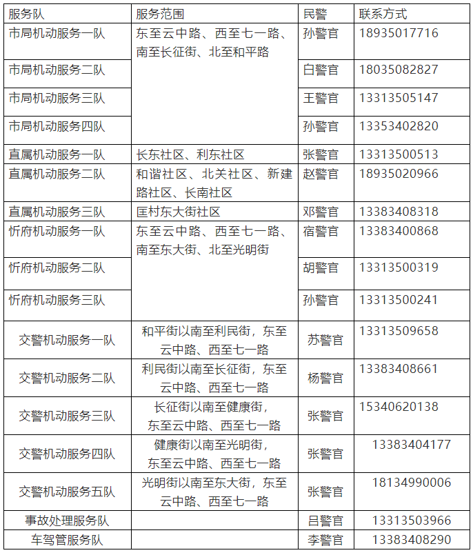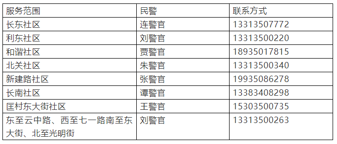 社區(qū)民警便民服務(wù)電話