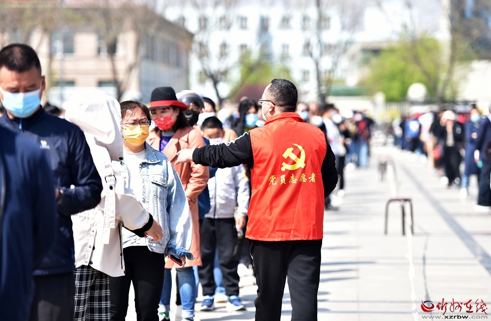 “我們城南區(qū)域設(shè)置了6個(gè)核酸檢測(cè)點(diǎn),許多黨員志愿者主動(dòng)請(qǐng)纓、投身疫情防控一線,用實(shí)際行動(dòng)展現(xiàn)了黨員的責(zé)任和擔(dān)當(dāng)?!痹诩t旗廣場(chǎng)檢測(cè)點(diǎn),南城辦黨工委書(shū)記張斌拿著小喇叭,在隊(duì)伍中間來(lái)回穿梭,指揮志愿者引導(dǎo)市民分批次、分時(shí)段有序檢測(cè),防止人員扎堆聚集,避免交叉感染。