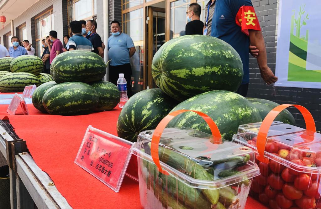 在文化節(jié)現(xiàn)場(chǎng),鑼鼓歡天、熱鬧非凡,來(lái)自全縣多家種植園區(qū)的蔬菜、瓜果等農(nóng)產(chǎn)品被紛紛擺上展臺(tái)。其中南園盛產(chǎn)的正抗一號(hào)西瓜,個(gè)頭大、品相好、香甜爽口,吸引了眾多市民駐足觀看、品嘗購(gòu)買(mǎi)。