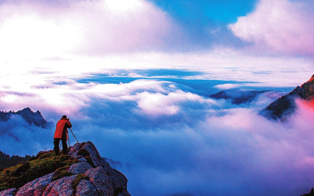 正是金風(fēng)送爽馬蹄急。華北最大的亞高山草甸,因山體像一柄碩大的荷葉而得名,荷葉坪呈現(xiàn)眼前。海拔2784米,駱駝石峰、荷葉長老、文殊雄獅、石柵馬樁、北齊長城、六郎將臺、 漣異水、雪山積素八景傳神又傳奇,且大多為石峰石人、石臺石城。這般石景,直教悟空心潮起伏。他想,臨出汾源時,曾在樓子山南的支鍋奇石上立足良久,千年萬載,三石相支。 石是自然之子,吾自石中孕育,假以百元年、千元年、萬元年,支鍋奇石中可否又有石猴迸生?獨自正思謀時,已是天云四合,秋雨即至。達(dá)摩祖師所化的荷葉長老趨步上前,口稱“荷葉坪前客,蓮花峰下人?!庇衷疲骸芭R佛有請,蘆芽山返程?!庇谑?,悟空撩步,白龍馬攢蹄,峰回路轉(zhuǎn),有緣稍停。石獅見石猴,獅眼映金睛。耳畔沉聲吟道:“當(dāng)年毗盧佛在蘆芽說法,文殊趕來聆聽,說到精妙處,雄獅回頭聽法,雙目圓睜。文殊見坐騎通人性、知法音,十分可愛,遂將其化為石峰,留守至今?!蔽蚩疹l頻點頭,引為知音。當(dāng)年被壓五行山下,是因不聽佛法,留守五百年;今日文殊雄獅卻因靈通佛法,竟也遠(yuǎn)離其主,留守深山。這樣想著,已至“石柵馬樁”,沿途遠(yuǎn)望北齊長城,大圣感而言之:“亂石一堆亂世砌,豈能抵擋人心齊?!?/p> 轉(zhuǎn)眼之間,已至蘆芽山腳。一路雨聲淅瀝,及至山腳已雨霽日出,一道七彩之虹凌空飛架。悟空定睛一看,雨后彩虹映射下,蘆芽山頂現(xiàn)金光萬道。那云天光閃處,偶爾有宮闕、仙人、山水、市井等圖景變幻,忽隱忽現(xiàn),忽明忽暗。這即是難得一見的蘆芽佛光,也是一處奇妙景觀。悟空亦心中暗道,這即是毗盧佛道場佛法的精義所在。許是心領(lǐng)神會,甚或心神契合,剎那,又聞劈空傳音,應(yīng)是毗盧遮那佛臨別留偈,說的是:人生一場如游戲,緊箍須解悟空心;跟著悟空游蘆芽,靈駐雷鳴聽雷音。(付彥云) 攝影:潘曉華 吳光宇 (責(zé)任編輯:盧相?。?/span> |