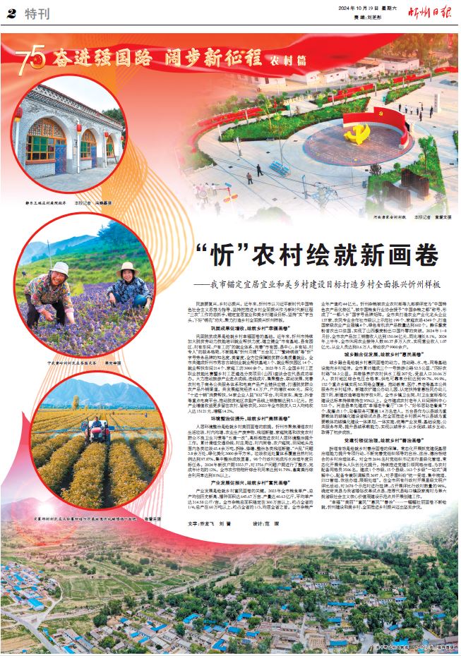民族要復(fù)興,鄉(xiāng)村必振興。近年來,忻州市以習近平新時代中國特色社會主義思想為指導(dǎo),堅持把推進鄉(xiāng)村全面振興作為新時代新征程“三農(nóng)”工作的總抓手,錨定宜居宜業(yè)和美鄉(xiāng)村建設(shè)目標,堅持“實”字當頭,下好“繡花”功夫,聚力打造鄉(xiāng)村全面振興忻州樣板。