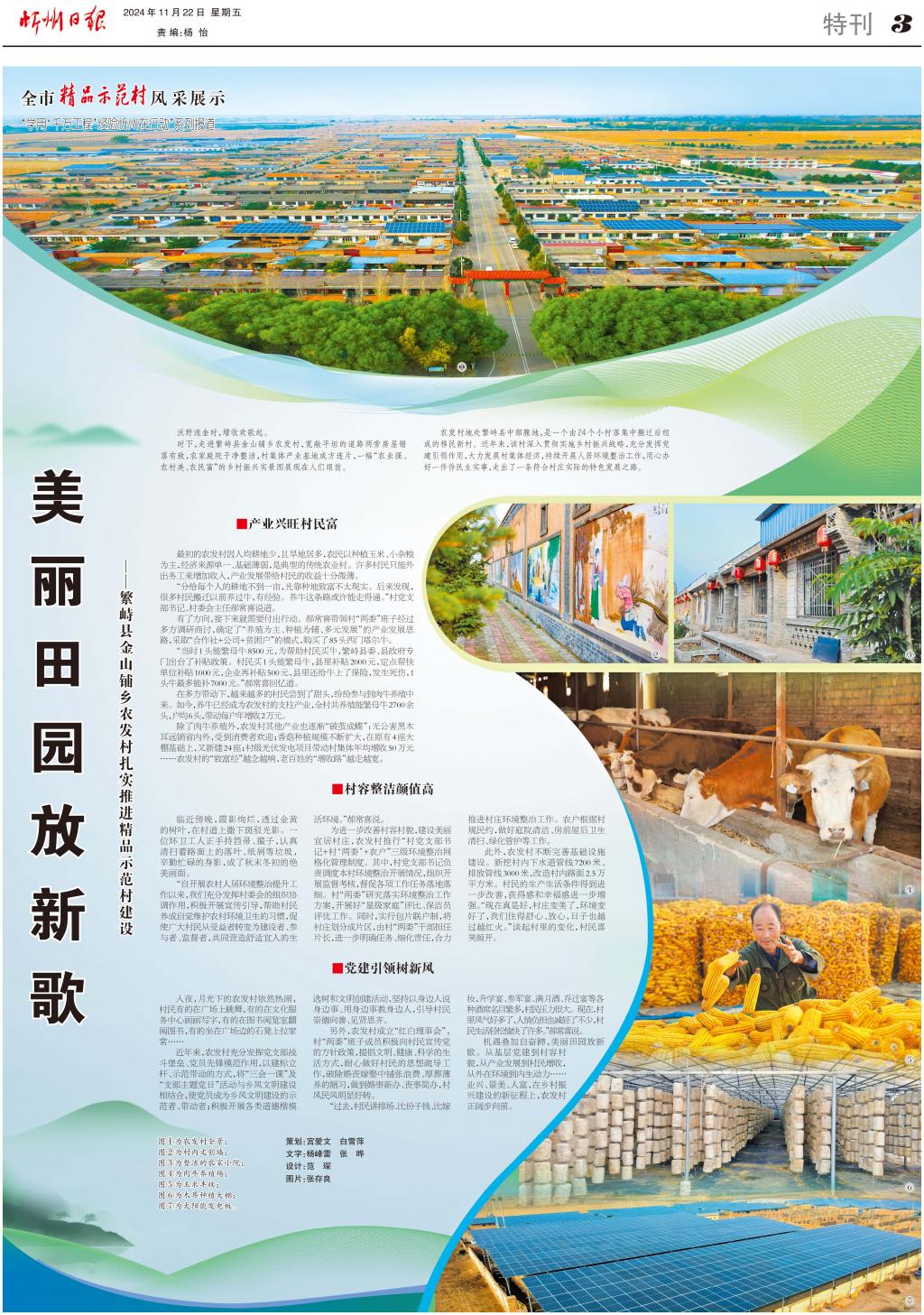 時下,走進繁峙縣金山鋪鄉(xiāng)農(nóng)發(fā)村,寬敞平坦的道路兩旁房屋錯落有致,農(nóng)家庭院干凈整潔,村集體產(chǎn)業(yè)基地成方連片,一幅“農(nóng)業(yè)強、農(nóng)村美、農(nóng)民富”的鄉(xiāng)村振興實景圖展現(xiàn)在人們眼前。