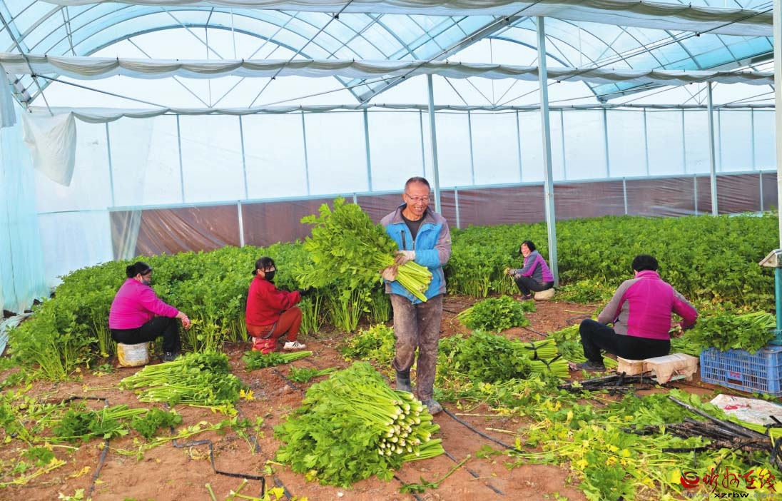 “今年收成咋樣?”馮國(guó)紅鉆進(jìn)溢滿芹菜清香的大棚詢問?!耙粋€(gè)大棚4畝田,一年四季都生錢。今年賺個(gè)10萬元沒問題。”種植戶李大爺快人快語。一旁正將蔬菜裝筐的村民郭印蘭也笑著搭話:“謝謝馮書記介紹我到這里來打工,現(xiàn)在我們不出村就能掙到錢了!”