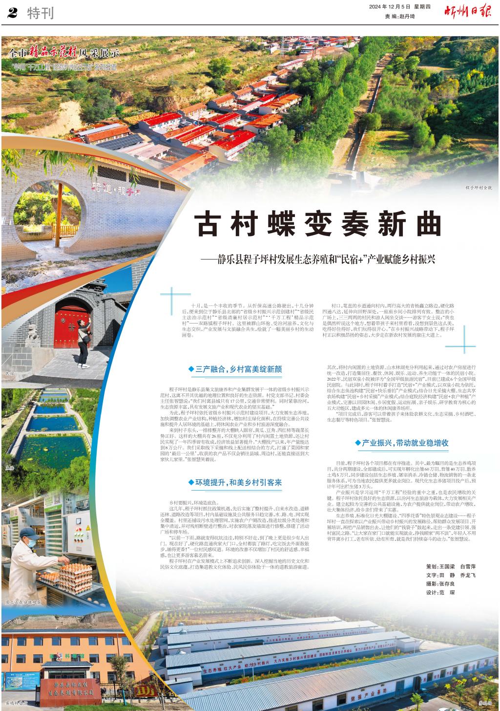 十月,是一個豐收的季節(jié)。從忻保高速公路駛出,十幾分鐘后,便來到位于靜樂縣北部的“省級鄉(xiāng)村振興示范創(chuàng)建村”“省級民主法治示范村”“省級清廉村居示范村”“‘千萬工程’精品示范村”——雙路鎮(zhèn)程子坪村。這里被群山環(huán)抱、受汾河滋養(yǎng),文化與生態(tài)交織,產(chǎn)業(yè)發(fā)展與文旅融合共生,繪就了一幅美麗鄉(xiāng)村的生動畫卷。
