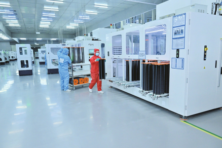 一道新能源科技(忻州)有限公司14GW光伏電池生產(chǎn)基地全自動(dòng)化車間。