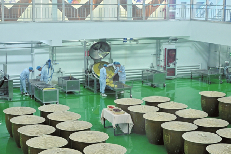 山西雁門王酒業(yè)有限公司10萬KL高端有機(jī)黃酒產(chǎn)業(yè)園工人忙碌生產(chǎn)。