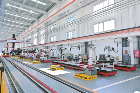 忻府區(qū)宏厚裝配式建筑科技產(chǎn)業(yè)園鋼結(jié)構(gòu)裝配式建筑生產(chǎn)線。