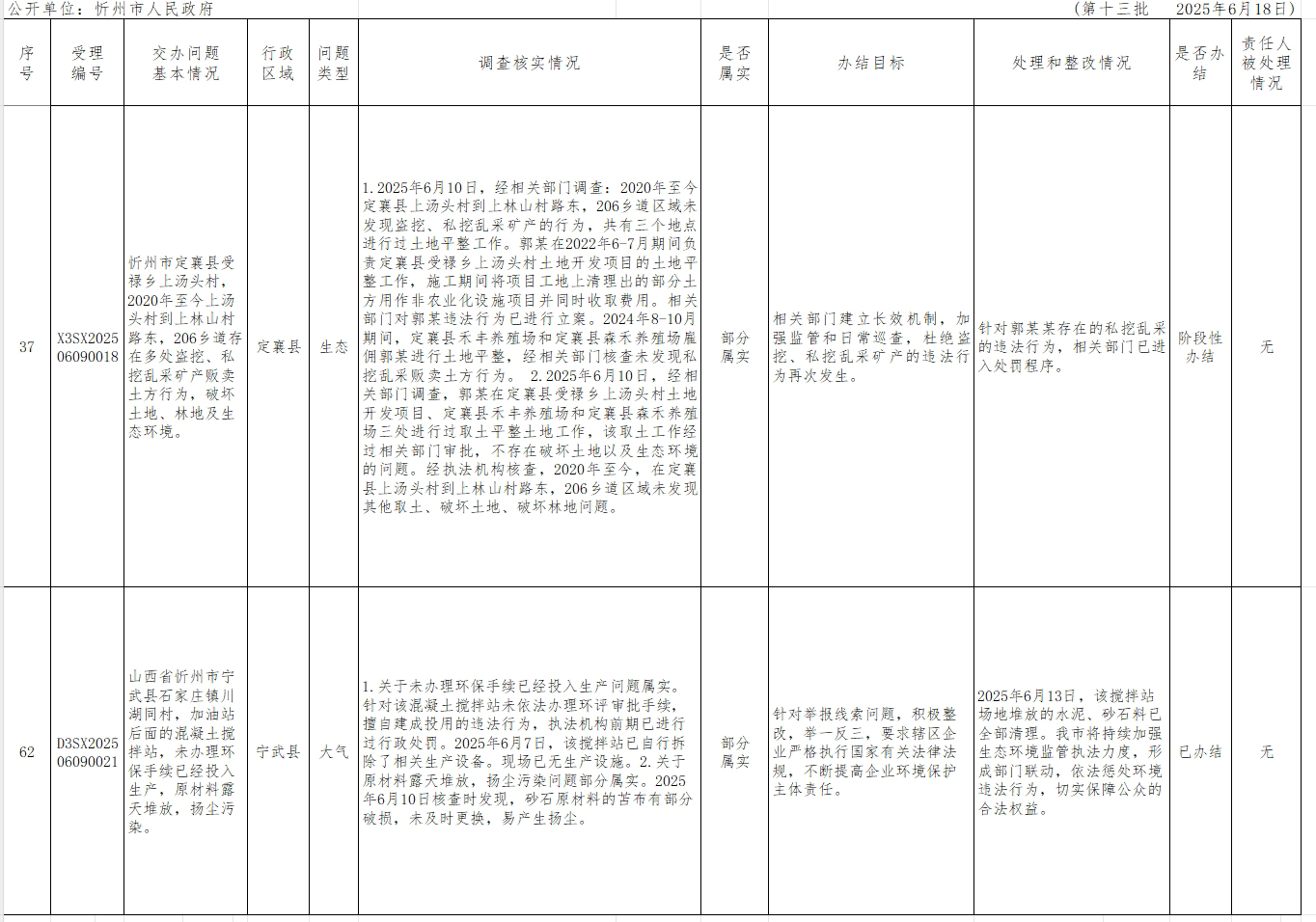 中央生態(tài)環(huán)境保護(hù)督察組群眾信訪舉報(bào)轉(zhuǎn)辦和邊督邊改公開情況一覽表(第十三批)