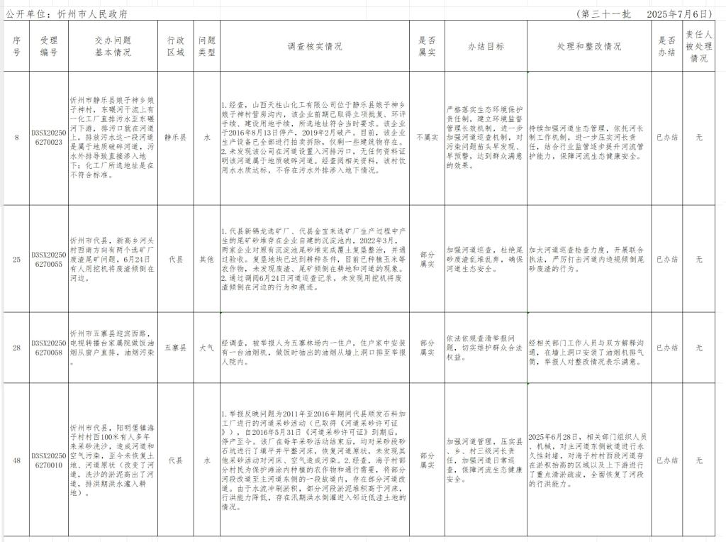 附件【中央生態(tài)環(huán)境保護(hù)督察組群眾信訪舉報轉(zhuǎn)辦和邊督邊改公開情況一覽表(第三十一批).xlsx已下載