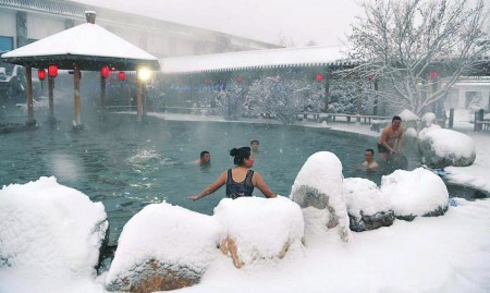 初冬,清晨的薄霧尚未散盡,“溫泉之鄉(xiāng)”奇村鎮(zhèn)南高村的溫泉民宿小院里,來自內(nèi)蒙古包頭的游客杜鵬程正悠閑地泡著溫泉。“每年這時候都來住上一個月,老寒腿舒服多了?!彼麗芤獾卣f。