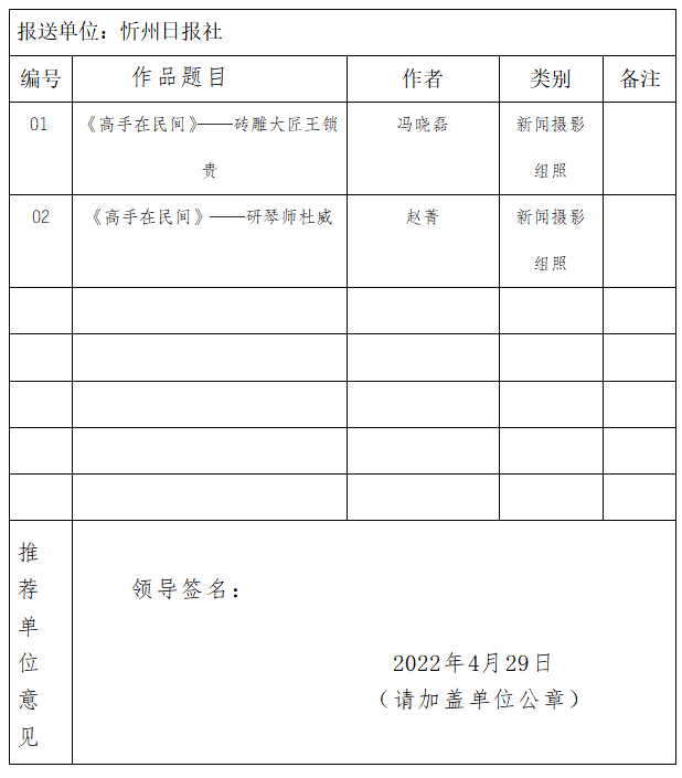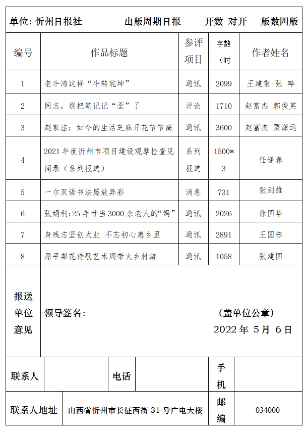 經(jīng)忻州日報社編委會研究決定,以下作品擬推薦申評第三十一屆山西新聞獎,現(xiàn)予以公示。有反對意見者,請將反對意見書面報至統(tǒng)籌部。