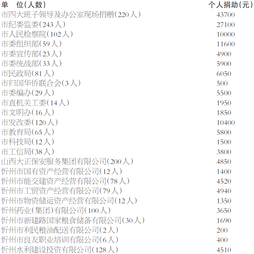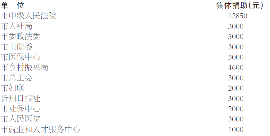 一、集體和個(gè)人同時(shí)捐助的單位(5個(gè)):