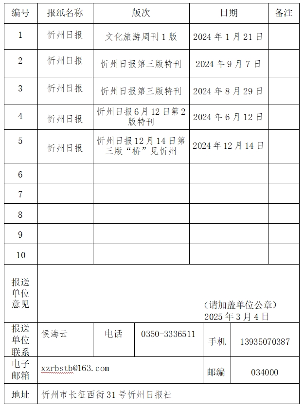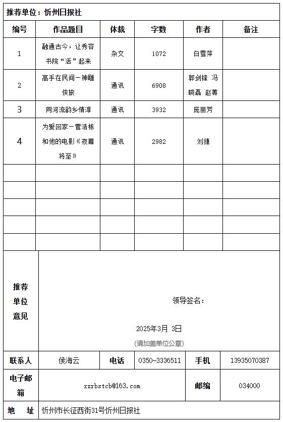 推薦單位:忻州日?qǐng)?bào)社