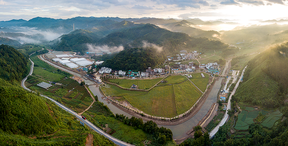 英德連樟中心村的晨曦。清遠日報全媒體記者 邱煒民 攝