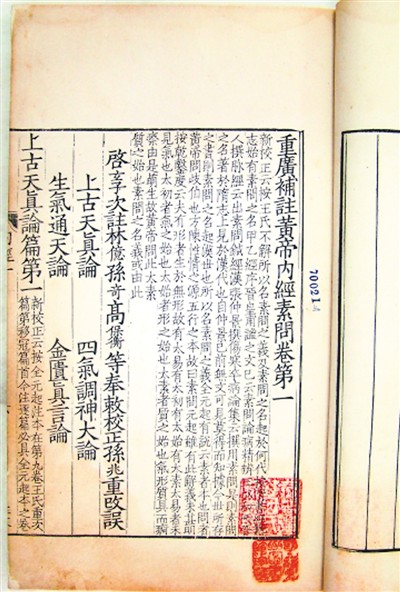 明嘉靖二十九年重廣補(bǔ)注黃帝內(nèi)經(jīng)素問二十四卷,甘肅省圖書館藏?!饵S帝內(nèi)經(jīng)》提出對(duì)瘟疫要早發(fā)現(xiàn)早治療,治療后防止復(fù)發(fā)。