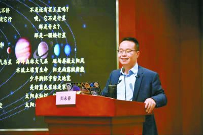 鄭永春曾多次到新疆克拉瑪依、湖北黃石、安徽六安、廣西馬山、陜西銅川、青海德令哈的大山深處,給那里的孩子們講太空里的故事,也許是因?yàn)橹v火星講得多,孩子們都喜歡叫他“火星叔叔”。“那里有些孩子從來(lái)沒(méi)上過(guò)科學(xué)課,他們也沒(méi)有聽(tīng)說(shuō)過(guò),太空里的種種故事?!编嵱来赫f(shuō)著,聲音變得低沉起來(lái),他忘不了,那些孩子聽(tīng)到太空時(shí),眼里閃爍的光芒,“大山深處,同樣需要科學(xué)之光照耀。”鄭永春說(shuō),他愿意永遠(yuǎn)做這些孩子的“火星叔叔”。