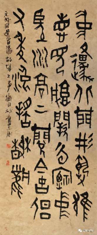 志剛先生因篆悟書,于書入篆,實際上就是兼顧了書寫的本質(zhì),找到了體現(xiàn)“漢字”本性的落點。對于一個書法家來講,除了解決書法的共性特征外,必須解決自己的個性特征才能名符其實,否則就很難有較高的成就。因為“篆”的綜合性和獨特表現(xiàn)性,正好可以給書寫者提供一種理解書法特質(zhì)的通道,那就是如何在更為有限的空間里呈現(xiàn)漢字審美的問題!在篆里,漢字固定的型,卻可以,而且必須根椐不同的語境有所改變才會呈現(xiàn)出藝術(shù)魅力。也就是先能“有”,然后再進(jìn)入“無”,從“有”入“無”就可以得自由,如果能夠解決這一問題,并將之綜合體現(xiàn)在書法創(chuàng)作中自然就會有在非同凡響的面貌。