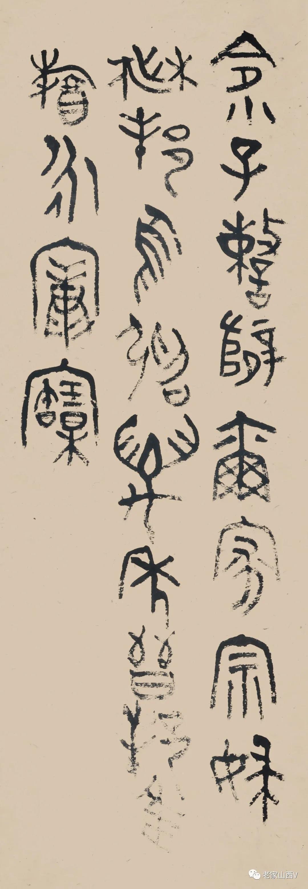 志剛先生因為是書篆并重并行,所以,這樣的實踐其實正好吻合了字——書——法的整體發(fā)展過程和規(guī)律?!白迸c單純的“書”相比較,具有綜合性,對“位置”和“筆意”的要求更高。而且,因為篆采用工具和材料的規(guī)定,最后作品呈現(xiàn)出來的作品實際上是一種近似于回到前早漢字表現(xiàn)形式——事實上現(xiàn)在的篆就是傳統(tǒng)的漢字實用性的一種專業(yè)化和細(xì)化。在這里,形與寫,硬與軟,刻與寫,鑄與寫,統(tǒng)一與個體得到了全面的發(fā)揮。