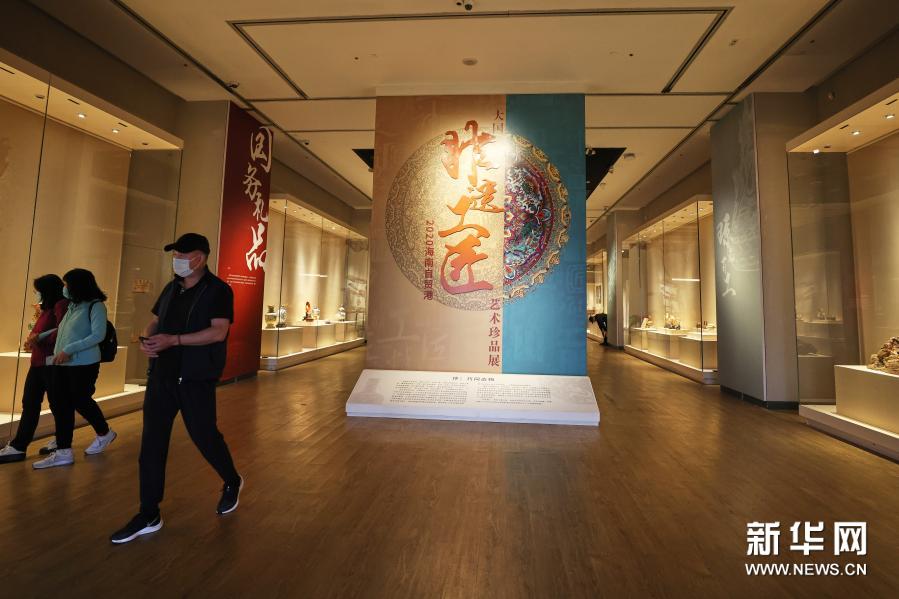 12月30日,人們?cè)诤D鲜〔┪镳^參觀2020海南自貿(mào)港大國非遺工匠藝術(shù)珍品展。近日,2020海南自貿(mào)港大國非遺工匠藝術(shù)珍品展在海南省博物館開展,展覽分為大國非遺工匠藝術(shù)珍品展和技藝傳承展兩大展區(qū)。珍品展展出北京景泰藍(lán)、雕漆、景德鎮(zhèn)陶瓷、海南工藝美術(shù)代表作品等具有代表性的非物質(zhì)文化遺產(chǎn)作品,在技藝傳承展區(qū),非遺手工藝人現(xiàn)場(chǎng)展演展示黎錦、苗繡、雙面繡、木雕等技法。(新華社記者 張麗蕓 攝)