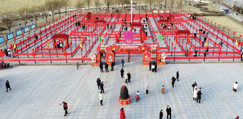 九曲黃河燈游會(huì),是河曲縣古老的民間文化活動(dòng),因其路線三回九轉(zhuǎn),所以寓意是天下黃河九十九道彎。燈游會(huì)場(chǎng)從上面鳥瞰就是一個(gè)方陣圖,陣內(nèi)有72桿旗,365盞明亮的燈籠,象征著在新的一年里天天亮亮堂堂,全年紅紅火火。河曲縣自古就有“有月無燈不算春”的說法。流傳至今、長(zhǎng)盛不衰的大型民間活動(dòng)——九曲黃河燈游會(huì)一直以來深受百姓喜愛。它像是一場(chǎng)集體的狂歡,見證了黃河岸邊河曲人民最虔誠(chéng)的新年祝福,承載著河曲人民新年風(fēng)調(diào)雨順、萬事勝意的美好祈愿,講述著黃河沉淀千年的傳奇故事。 本報(bào)通訊員