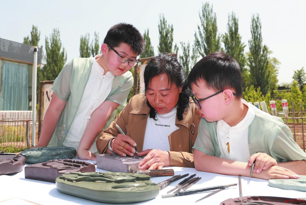 在活動現(xiàn)場,市級剪紙、面塑和硯臺雕刻等技藝傳承人講述非遺知識,與市民互動分享。小朋友們跟隨忻府區(qū)面塑藝人面對面進行研學(xué)體驗。捏、揉、搓、刻、粘……做出了一個個憨態(tài)可掬的動物造型。
