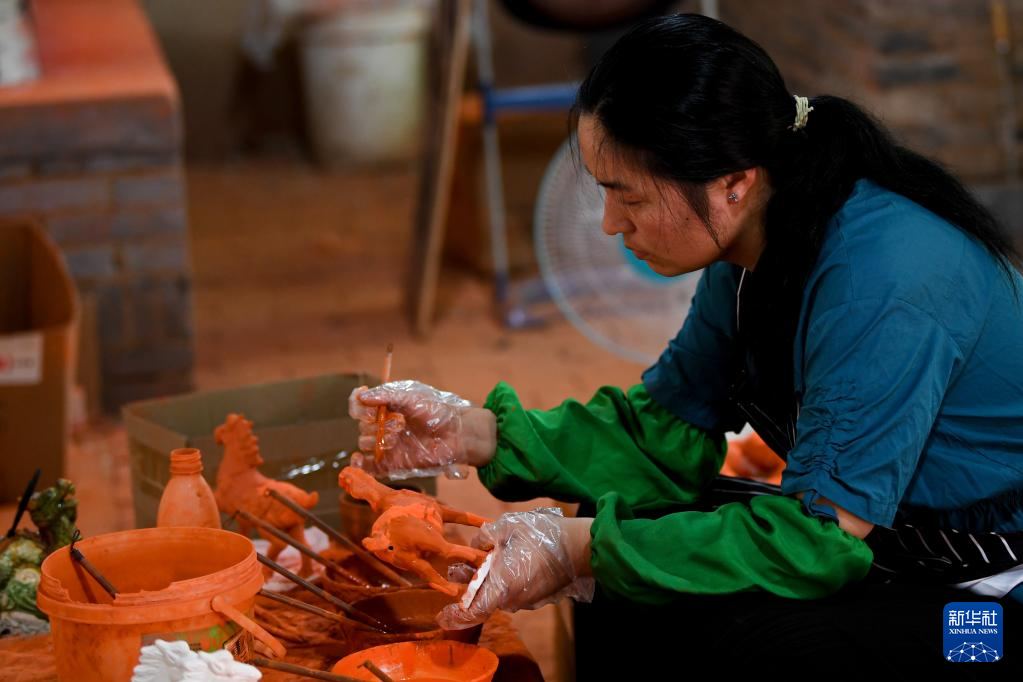 河南省洛陽(yáng)市朝陽(yáng)鎮(zhèn)南石山村以生產(chǎn)唐三彩而聞名。近年來(lái),當(dāng)?shù)卣e極引導(dǎo)三彩產(chǎn)業(yè)數(shù)字化建設(shè)工作,推動(dòng)唐三彩燒制技藝傳習(xí)館、唐三彩陶藝博物館、唐三彩文化研學(xué)所等優(yōu)化升級(jí)。目前,南石山村唐三彩產(chǎn)業(yè)的專業(yè)燒制藝人有2000余人、文化企業(yè)68家,年產(chǎn)值達(dá)3.5億元。新華社記者 吳剛 攝