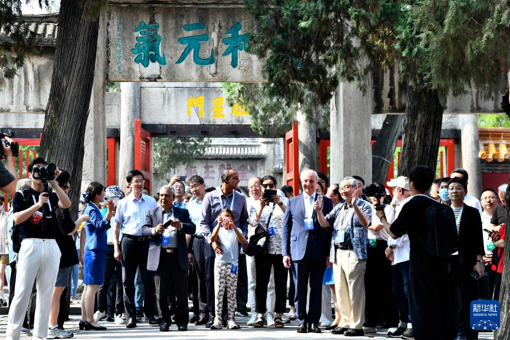 6月27日,參加世界互聯(lián)網(wǎng)大會數(shù)字文明尼山對話的中外與會嘉賓和游客在曲阜孔廟參觀。