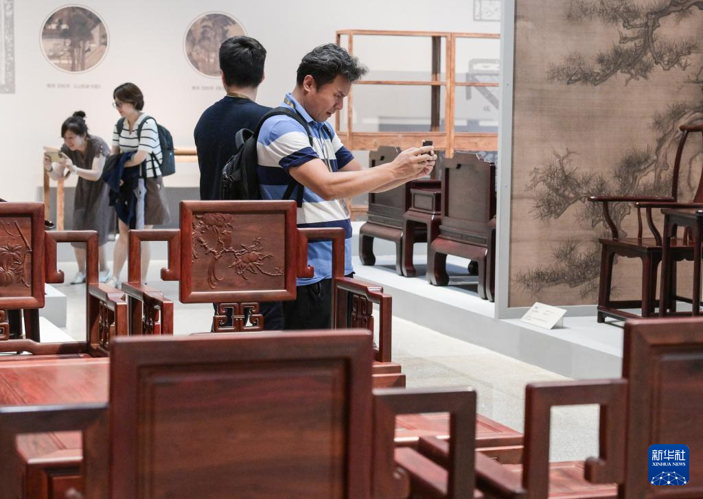 當日,“心·傳——陳玉樹新時代古典家具藝術(shù)展”在位于北京的中國工藝美術(shù)館、中國非物質(zhì)文化遺產(chǎn)館舉辦,展出了高級工藝美術(shù)師陳玉樹近年創(chuàng)作的20套古典家具,展現(xiàn)出中國木作技藝之美。新華社記者 李賀 攝