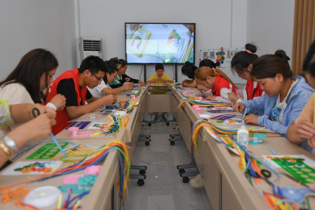 7月5日,在成都市溫江區(qū)衍匠文創(chuàng)工作室,不少市民前來(lái)體驗(yàn)衍紙畫(huà)制作。新華社記者 胥冰潔 攝