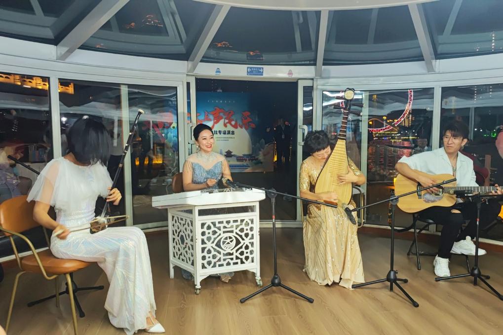 這是天津海河游船上舉行的“海上聲民樂(lè)”演出。新華社記者 宋瑞 攝