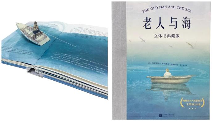 《走近三星堆》是一本極具視覺震撼力的三星堆全景紙藝立體書,它用7個(gè)立體跨頁,帶領(lǐng)讀者在探尋中揭開古蜀國的神秘面紗,全面呈現(xiàn)了三星堆的考古發(fā)掘歷程和三星堆文明的大致面貌,還對三星堆遺址第二輪考古發(fā)掘的初步成果做了概要性的介紹,并融入了很多考古小知識,其入選“2022年度中國好書”,并成為首個(gè)入選該獎(jiǎng)項(xiàng)的立體書?!独先伺c海》是首部以立體書形式呈現(xiàn)的諾貝爾文學(xué)獎(jiǎng)作品,全書共有20余個(gè)精巧可動(dòng)的立體紙藝裝置,在不弱化名著原文的基礎(chǔ)上,將立體插畫融入書中,二者相輔相成,既能讓讀者體驗(yàn)到傳統(tǒng)閱讀的樂趣,又能夠沉浸于豐富的立體紙藝場景中。
