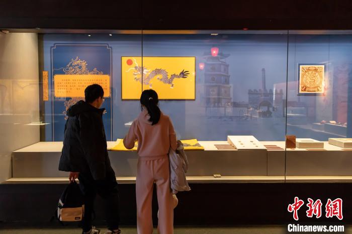 2月4日,天津博物館特別推出《龍行龘龘:甲辰龍年天津博物館藏龍文物特展》。圖為游客正在參觀展覽。王在御 攝