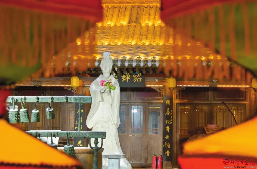 現(xiàn)在的貂蟬陵園是在墓地原址重新筑砌的,坐北朝南,門(mén)檐上懸“貂蟬陵園”橫匾,兩側(cè)有“閉月羞花堪為中國(guó)驕傲,忍辱步險(xiǎn)實(shí)令須眉仰止”的金文楹聯(lián)。園內(nèi)用花墻分隔成南、北兩部分,北為陵區(qū),南為展區(qū)。南院建貂蟬彩塑館,再現(xiàn)“貂蟬迎賓”“羞花問(wèn)世”“祭山驚艷”“落難認(rèn)父”“拜月銘志”“憂國(guó)請(qǐng)纓”“施計(jì)除奸”“繡袍寄情”等場(chǎng)面,反映了貂蟬“不惜萬(wàn)金軀,何懼險(xiǎn)象生”的一生。