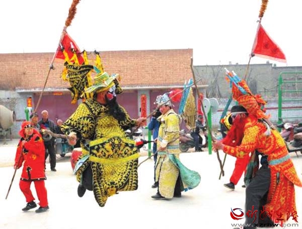 山西是民間社火之鄉(xiāng),定襄縣宏道鎮(zhèn)北社西村的大馬社火便是其中的佼佼者,也是較為獨(dú)特的一種。其特點(diǎn)是,集戲劇、舞蹈、武術(shù)、雜技、民樂(lè)和古代軍事布陣等為一體,用于民俗節(jié)慶、祭祀文化活動(dòng),整個(gè)表演過(guò)程沒(méi)有一句臺(tái)詞。據(jù)傳已有兩千多年的悠久歷史,傳承幾經(jīng)興盛和沉寂,最終得以完整地保留了下來(lái),由于場(chǎng)面宏大、生動(dòng)壯觀、審美價(jià)值較高,成為珍貴的民俗文化活化石。