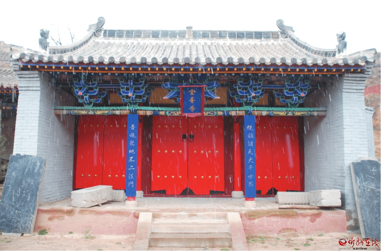 金峰寺原址位于保德縣孫家溝鄉(xiāng)牙前塔村東約1000米處,現(xiàn)已搬遷至東關(guān)鎮(zhèn)佘家梁村。據(jù)《保德州志》記載,金峰寺創(chuàng)建于金代,清康熙年間重修,現(xiàn)存建筑為清代遺構(gòu)。寺院坐北向南,二進院落布局,占地面積為1233.72平方米。中軸線上建有天王殿、千佛殿、正殿。