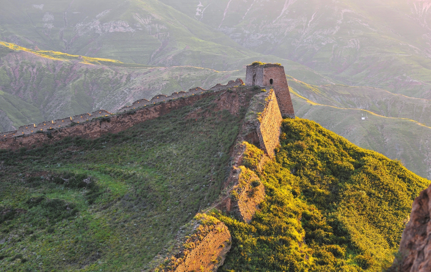 12項(xiàng)全國(guó)之最:寧武縣東寨鎮(zhèn)的趙長(zhǎng)城,為戰(zhàn)國(guó)趙肅侯公元前333年所筑,是我國(guó)修筑最早的長(zhǎng)城之一;偏關(guān)縣老牛灣是全國(guó)最雄壯的長(zhǎng)城與黃河握手處,長(zhǎng)城與黃河在此交匯,景觀雄渾壯麗;從寧武經(jīng)神池到偏關(guān)的土長(zhǎng)城是全國(guó)保存最完好、形體最高大的土長(zhǎng)城;神池境內(nèi)的黃花嶺堡是全國(guó)保存最為完整的北齊城堡;偏關(guān)境內(nèi)的丫角山是內(nèi)長(zhǎng)城與外長(zhǎng)城的交會(huì)點(diǎn),長(zhǎng)城縱橫交錯(cuò)、環(huán)互分布,連環(huán)神秘,雄偉壯觀堪稱全國(guó)之最,是一處壯美的“山西結(jié)”;偏關(guān)縣水泉堡的長(zhǎng)城地道為全國(guó)現(xiàn)存最完整的“地下長(zhǎng)城”;岢嵐縣發(fā)現(xiàn)一通隋代修筑長(zhǎng)城的古碑,是全國(guó)迄今最早記錄長(zhǎng)城修筑的古碑;偏頭關(guān)老營(yíng)堡的幫城是全國(guó)保存最完好的幫城,幫城和長(zhǎng)城并行800米,兩道墻體間隔僅有十余米,形成一道幽窄的長(zhǎng)城走廊,為全國(guó)最為雄壯的“雙龍并行”景觀;寧武關(guān)陽(yáng)方口長(zhǎng)城和雁門(mén)關(guān)猴兒嶺長(zhǎng)城上的空心敵樓磚雕門(mén)券圖案精美,工藝精湛,是全國(guó)明長(zhǎng)城段設(shè)計(jì)最好、保存最好的磚雕門(mén)券;忻州明長(zhǎng)城段上修筑外帶土圍子中間是墩臺(tái)的火路墩(亦稱腹里接火墩)的數(shù)量為全國(guó)最多,僅偏頭關(guān)老牛灣一線就有30多個(gè);平型關(guān)是中國(guó)現(xiàn)代戰(zhàn)爭(zhēng)中最著名的關(guān)口,1937年9月25日,八路軍首戰(zhàn)日寇,取得大捷,震驚中外;雁門(mén)關(guān)的復(fù)修開(kāi)發(fā),被中國(guó)長(zhǎng)城學(xué)會(huì)和國(guó)家文物局專家評(píng)價(jià)為中國(guó)當(dāng)代長(zhǎng)城復(fù)修之典范。
