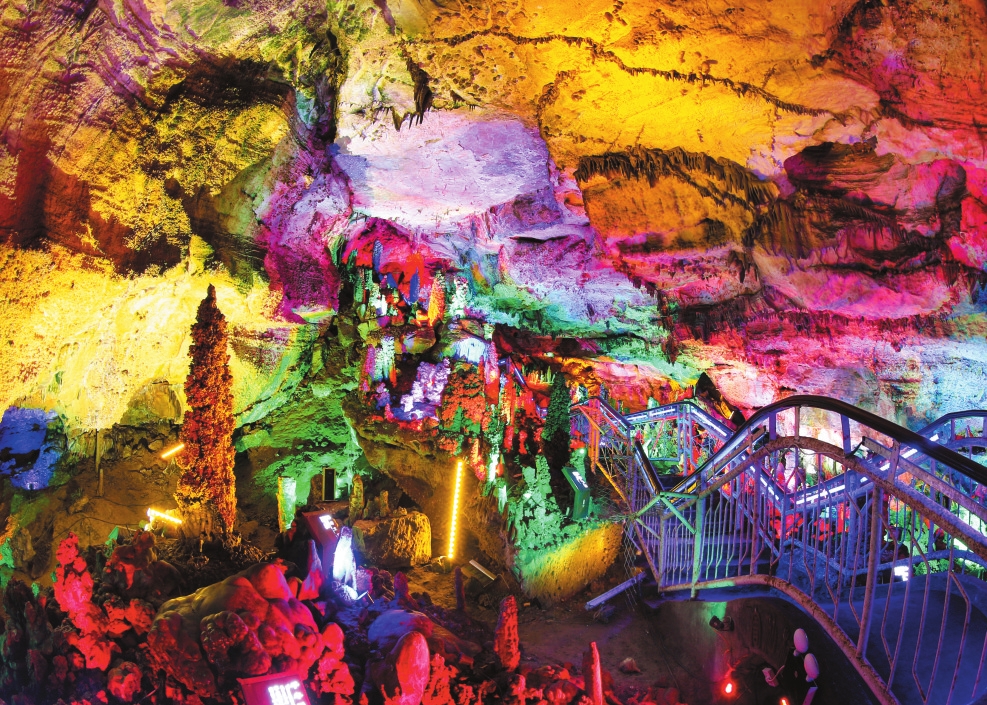 七巖山廟會。張晉蘭攝 系舟山禹王洞: 地殼運動的奇幻饋贈 系舟山是一個地質(zhì)寶庫。四億年前,這里曾是一片汪洋大海,直到七千萬年前,華北發(fā)生劇烈的造山運動,海床上升為陸地,太行山脈由此形成。山體主要由石灰?guī)r構(gòu)成,這是溶洞形成的物質(zhì)基礎(chǔ)。 系舟山有許多溶洞,有白龍洞、黑龍洞等,其中禹王洞是最大的一座天然溶洞,號稱華北第一溶洞,洞內(nèi)九曲回環(huán),鐘乳石如群獅迎賓、金龜出洞,洞外系舟山林海如濤。 相傳四千年前,洪水肆虐華夏,大禹沿汾河泛舟北上治水時,將船系于一座山中。這座山因此得名“系舟山”,而山腰處一座巨大的天然溶洞,因大禹曾在此居住,得名禹王洞。 洞內(nèi)至今矗立著一尊石像,形態(tài)酷似禹王身影,靜觀著千萬年時光流轉(zhuǎn)。 禹王洞坐落在忻州城南20公里的系舟山腰,一座巨大的三角形洞口鑲嵌于懸崖峭壁之上,海拔1768米。舊地方志稱其為“仙人洞”,直到一段治水傳說才賦予了它新的名字。 明代《忻州志》記載:“仙人洞,在福田寺左,相傳通平山縣,產(chǎn)瑪瑙?!边@段記載揭示了另一個秘密——洞穴可能通往河北平山縣。1992年開發(fā)時探明深度已達2000余米,但實際長度仍是未解之謎。洞內(nèi)恒溫在8-11℃之間,形成“盛夏涼風習(xí)習(xí),寒冬溫暖如春”的獨特微氣候。當游客沿著依巖而建的“天梯”或乘坐索道抵達洞口時,便踏入了一個四季恒常的時空膠囊。 1992年,忻州市政府與當?shù)伛v軍聯(lián)合開發(fā)禹王洞,修筑盤山公路、架設(shè)索道,整修出700余米游覽線路。洞內(nèi)被劃分為議洪廳、治洪廳、泄洪廳三座大廳,以及金龜洞、水晶洞、無底洞等十個特色洞穴。 游客沿著精心設(shè)計的路線,可觀賞50多個景點。其中“群獅迎賓”,洞口一組石筍形似雄獅列隊,栩栩如生;“金龜出洞”,巨石形成的龜狀奇石,仿佛正探秘人間;“瑤池仙境”與“蓬萊仙島”,燈光下的石幔如天宮云霞;“鎮(zhèn)海寶塔”,高1.8米的花團狀石塔,景象奇麗。最令人驚嘆的是洞內(nèi)的“冰瀑世界”。在水晶洞和一線天區(qū)域,巖溶從洞頂傾瀉而下,形成各種瀑布奇觀:有如長白山瀑布的白練懸空,有如黃果樹瀑布的氣勢恢宏,還有黃巖大瀑布的玲瓏剔透。一處名為“禹王觀瀑”的景點,更讓游人仿佛看見大禹治水時三過家門而不入的身影。