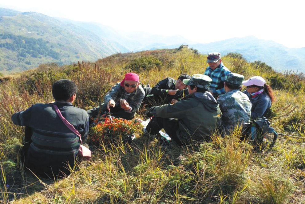 柳林尖 登系舟山主峰柳林尖: 最完美的戶外體驗 柳林尖是系舟山最高峰,海拔2101米。國慶假期,我們一行十人成功登頂,完成了一次挑戰(zhàn)之旅、探險之旅、極限之旅。 柳林尖山勢險峻,荊棘叢生,罕有人至。離柳林尖最近的是忻府區(qū)董村鎮(zhèn)的白家山村,位于系舟山北麓。為了找一個向?qū)В覀凃T行隊四名隊友三訪白家山。 白家山村有兩百多口人,而去過柳林尖且登頂?shù)牟]有幾人。第一次造訪白家山村,我們先找到白家山西面兩公里處的肖家山村,四處打聽未找到合適人選。二訪白家山找到兩位四十多歲的村民,他們十幾年前曾去過柳林尖,說自己還能找到上山的路,但要的工錢很高,一天五百元。騎友們覺得不太靠譜,只好第三次再訪白家山。隊長葉兒提議找一個羊倌當向?qū)?,只有羊倌可能熟悉上山的路。這回我們直奔白家山村老羊倌的家,找到張羊倌。他爽快地答應(yīng)了。他說,柳林尖雖險,但值得一去,還給我們介紹了登柳林尖的難度和注意事項。大家覺得這個羊倌可靠可信,事實證明我們的判斷是對的。柳林尖登頂,張羊倌危難之時顯身手,立下奇功。 早晨六點與羊倌會合后直抵系舟山腳下,大家背好干糧和水便開始登頂。此時,誰也沒有想到這次登頂難度有多大,挑戰(zhàn)有多強! 山口是一個廢棄的采石場。沿著碎石路進入,是一條洪水沖下的卵石路,越往里走越險峻,山勢崔嵬,怪石嶙峋。西峰上有一塊很像駱駝的巨石,北峰上有一塊像鐘馗的石頭,還有一塊老人抱娃石……往前走,北面山埡口隱隱可見一處人造石景,張羊倌介紹那里名叫“土匪窩”,是民國前一伙土匪的山門,但今天肯定沒時間上土匪窩了。 再往里走,我們開始手腳并用,沿石崖走“之”字形向上攀緣。登上石崖,是一片荊棘叢生的陡坡,各種形狀的灌木密密麻麻。酸刺、黑格鈴、刺梅、野山桃等,許多都是帶刺的,刺梅的刺尤其尖利,不小心劃到臉上就會留下血印。走了一會兒,就有兩位隊友臉上掛了彩,大伙更小心了。在羊倌帶領(lǐng)下,隊友列隊緩慢前進,前后之間保持兩米距離。如果靠得太近,前面的人撥開荊棘條會甩到后面的人身上或臉上;如果距離超過兩米,就看不到前面的人在哪兒,找不到路了。 為了不至于迷路,隊長葉兒行前準備了一捆紅布條,邊走邊把紅布條掛在灌木枝上。 走過一片荊棘林,忽遇一塊巨石,之后眼前豁然開朗。放眼望去,群山環(huán)繞,松濤陣陣,紅葉、黃葉、綠葉相間,層林盡染,秋意濃濃。美景讓大家暫時忘記了疲勞! 再向前,是一片更茂密的荊棘林,坡度更陡了,大家顧不得叢林中有刺,相互攙扶著向前走。上面是刺人的荊棘,下面是萬丈深淵,腳下的草有點濕滑,一旦踩空,可能粉身碎骨。羊倌一直提醒注意腳下,踩實了再邁步,真是心驚膽戰(zhàn)。幸好前面出現(xiàn)了一處空地,大伙得以小憩,喝點水,補充一下體能。有三人主動放棄登頂,大伙商議后,剩余十人決定繼續(xù)前進,完成登頂夙愿。三人原地守候,等大伙返回后會合。 再往上走,是一個巨石崖,更險更難了,要一步一停挪移,手攀著,人扶著、坐著、爬著前進。隊友個個揮汗如雨,水壺里的水快喝完了,只能小抿一下潤潤嗓子。過了巨石崖,又是一片荊棘林??斓缴巾?shù)臅r候,眼前變得開闊,腳下是一片草甸。快步走過草甸,上到了柳林尖最頂端。無限風光在險峰,好一片莽莽蒼蒼的大好河山。 登頂時間為兩點整。從山腳至山頂共用五個半小時。 頂上有一個片石壘起的小石堆,證明有人來過,但沒有腳印和其他痕跡,說明已很久無人光顧。我們半躺在松軟的草地上,微風吹來,好不愜意。 頂上雖好,我們卻不敢久留。草草吃了干糧,便開始下山,因為更艱苦的挑戰(zhàn)還在后面。往下走的時候,隊長特意吩咐,不許留下一點垃圾,這是戶外人必守的規(guī)矩。 上山容易下山難。往下走更困難、更艱險,大家的體力在下降,腳已隱隱作痛,小腿也開始酸困。真的是一步一驚,一步一險,用“驚心動魄”四個字來形容毫不夸張。越走越險,越走越慢。原計劃下山時間和上山時間差不多,可以保證天黑前下山,但下山之艱難超出大家的想象。一是下山的路更難走,二是大家體力超支,所有人帶的水已喝光,口干舌燥。每走一步腳都在痛,小腿已麻木,膝蓋也開始酸疼…… 眼看夜幕降臨,隊長要求大家咬緊牙關(guān),加快速度。隊友們相互鼓勵,體能好的照顧稍差的。五名女士表現(xiàn)得異常堅韌,與平時表現(xiàn)大不相同。如果有人掉隊,拉開距離,前面的隊友會高喊一聲網(wǎng)名,溫暖的回聲在空谷中久久回蕩。 半道等候的三名隊員與大部隊會合。天已擦黑,大伙小心翼翼,屏住呼吸下山。張羊倌鼓勵大家:“山下有一眼山泉,馬上到山腳下了,再加一把勁。”大家聞之,精神一振,加快了步伐。望梅能止渴,看來這位張羊倌也有曹丞相的智慧呢。 一位年齡稍長的大姐,由于左腳有陳舊性骨刺,右腳又起了泡,每移一步都鉆心地疼,走得很慢,走走停停,面對險境,她開始絕望,由小聲啜泣到號啕大哭。似乎被傳染,另一位女士也哭了。天已大黑,還有一段異常險峻的山崖路,大家都緊張起來,老隊員們開始做原地扎營、守候的準備。這時,羊倌拉起大姐說:“來,我背你一段?!笨粗蛸谋持蠼阕哌^驚險陡峭的山崖,眾人驚訝,羊倌真神人也…… 我暗想,羊倌哪里是神人,分明是凡人,也是血肉之軀,他一定也很累,只是比別人多了一份堅韌