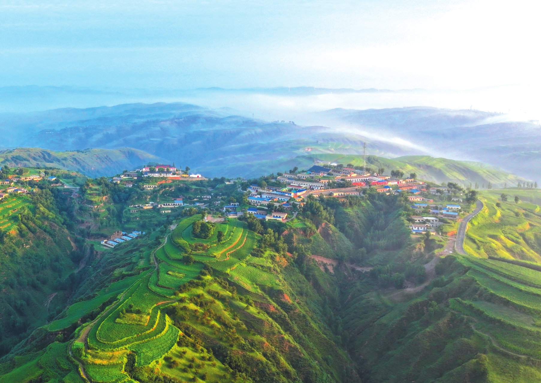 顧大明對河曲縣傾力開發(fā)翠峰山旅游資源、打造趙家溝寫生基地深表欣慰。今日翠峰山松柏蒼郁、群峰拱峙,登頂俯瞰,晉西北黃土高原地貌盡收眼底,雄渾氣象令人頓生“會當(dāng)凌絕頂”之慨?!斑@里不僅有厚重的黃土,更有勤勞勇敢、世代守護(hù)家園、將荒原變綠地的人們?!彼で闈娔?,將壯麗風(fēng)景與奮斗身影一并融入筆端。