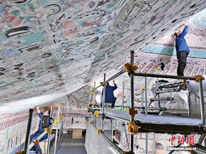 圖為2024年拍攝的莫高窟第55窟文物修復現(xiàn)場。(資料圖,敦煌研究院供圖)