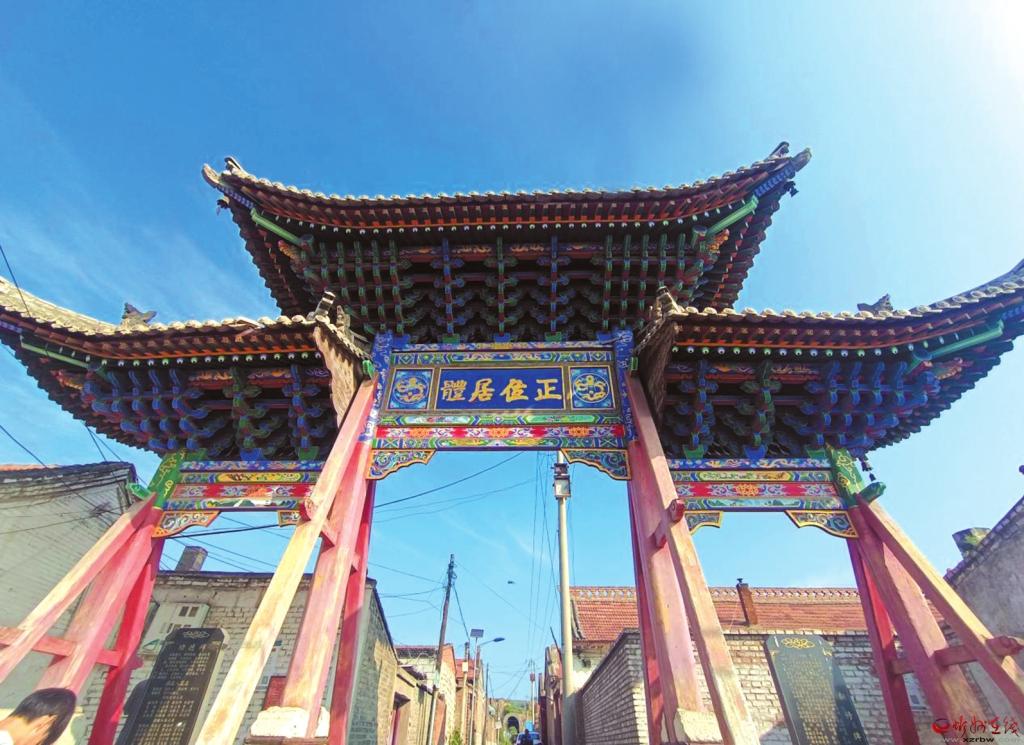 五寨縣三岔木牌坊坐落于三岔堡十字大街的北口,始建于明萬歷九年(1581年)。木牌坊坐北朝南,座基為60厘米高的石砌臺(tái)基。牌坊呈三項(xiàng)疊襯“品”字形制,四楹三門,坊高7.25米,通寬11.2米,其中門高3米,寬3.15米,車馬通行;兩邊門略低,高2.65米,寬2米,只呈門樣,不作通行。四楹都用雙木斜卡,并抱有雕獅的石鼓,以鐵條箍制,既固根基,又顯威嚴(yán)。欄坊下裝有木刻匾額,正面題“正位居體”,背面題“大觀在上”。頂端起脊彩飛,雙層檐頭,青瓦蓋頂;下檐五步彩飛檐頭拱,結(jié)構(gòu)奇巧,造型美觀,檐頭四角掛有風(fēng)鈴,微風(fēng)輕拂,鈴聲悠揚(yáng),蔚為壯觀。三岔木牌坊是五寨縣境內(nèi)僅存的一座木結(jié)構(gòu)明代古建筑,具有較高的建筑文化水平和藝術(shù)鑒賞價(jià)值。2007年6月6日,忻州市人民政府公布其為市級(jí)文物保護(hù)單位。