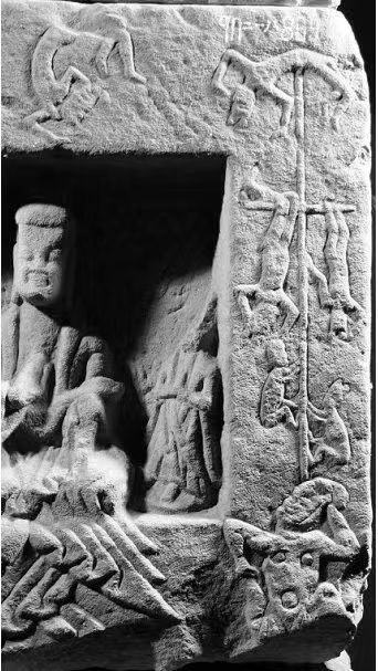 如果說峨口撓閣與此圖同根一脈,同生于雁門這方沃土,而且是飽吸了中華文明與佛教文化之雨露滋潤,那么峨口撓閣的年齡至少可讀出1500余個(gè)年輪。云岡石窟第38窟屬晚期造,是云岡石窟三期。準(zhǔn)確時(shí)間段是魏孝文帝從大同遷都洛陽之后,即公元494年之后的正光年間,此學(xué)術(shù)點(diǎn)由窟中的石刻題記所證實(shí)。正光年號(hào)是北魏遷都洛陽后第三任皇帝元詡使用第3個(gè)年號(hào),時(shí)間為公元520年~525年,此間曾爆發(fā)了把北魏王朝送上不歸之路的歷史大事件,著名的北魏王朝歷史轉(zhuǎn)折點(diǎn)“六鎮(zhèn)起義”。